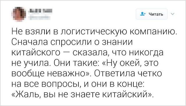 Собеседование - это мучительное мероприятие, на котором каждый человек должен проявить чудеса харизмы. Что только не приходится делать претенденту на должность, чтобы его взяли на работу. Но бывает так, что работодателю просто невозможно угодить... Давайте почитаем забавные мини-истории от пользователей, которых не взяли на работу по совершенно идиотским причинам.