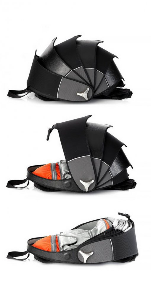Новое слово в мире рюкзаков – рюкзак Pangolin by Cyclus, вручную созданный колумбийцами из старых переработанных шин. Его дизайн вдохновлен панголинами, тело которых защищено крупными чешуями, черепицеобразно налегающими друг на друга. Вместо стандартной застежки-молнии здесь действует другая система – слои складываются и фиксируются магнитным механизмом.