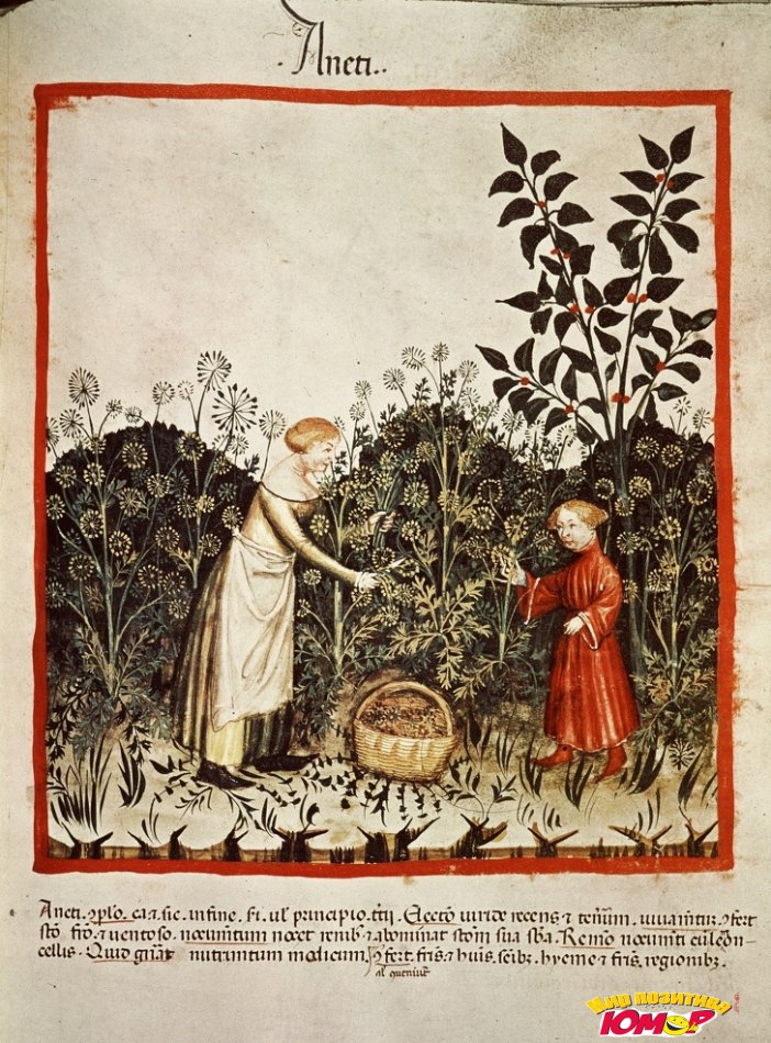 На этой миниатюре, созданной не позднее 1400 года, изображены крестьянка и ее дочь, собирающие урожай.