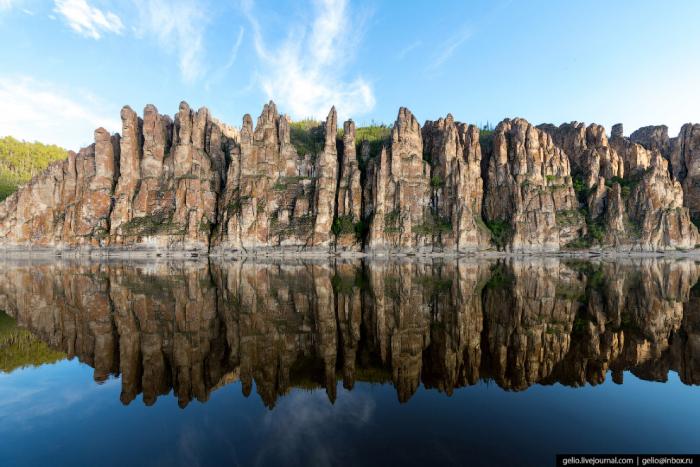 Река у подножия столбов служит зеркалом, благодаря чему скалы кажутся вдвое больше.