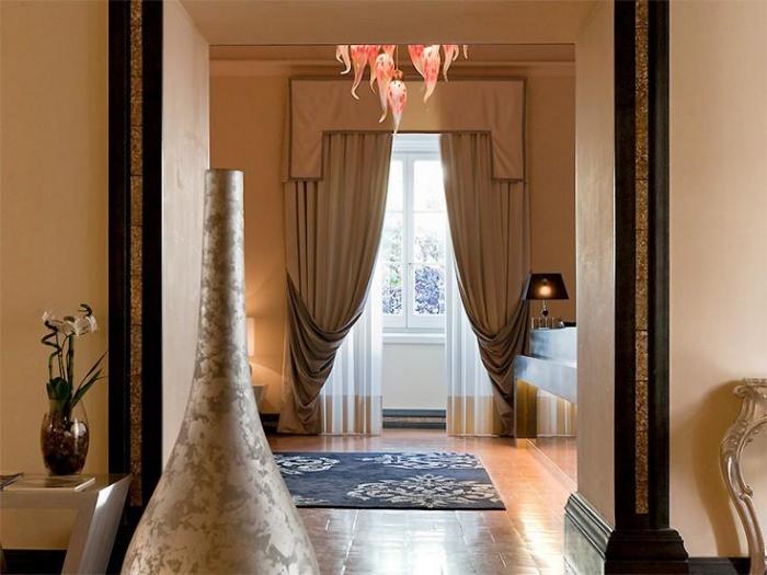 Здесь почти 200 комнат, и все они очень просторны, что, к слову, для исторических зданий совсем нехарактерно. Роскошная обстановка хранит налет старины: мебель выдержана в классическом стиле, потолки и полы отделаны черным деревом, на окнах сохранились свинцовые переплеты, ванные комнаты сияют белизной, интерьеры украшены картинами и фресками.