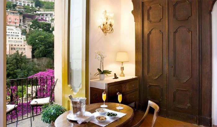 В отличие от других отелей, находящихся на скалистой стороне Позитано, Palazzo Murat расположен в пешей доступности от исторического центра города. Его постояльцам не нужно преодолевать крутой подъем, чтобы дойти до пляжа. Правда, и виды на океан здесь не такие захватывающие.