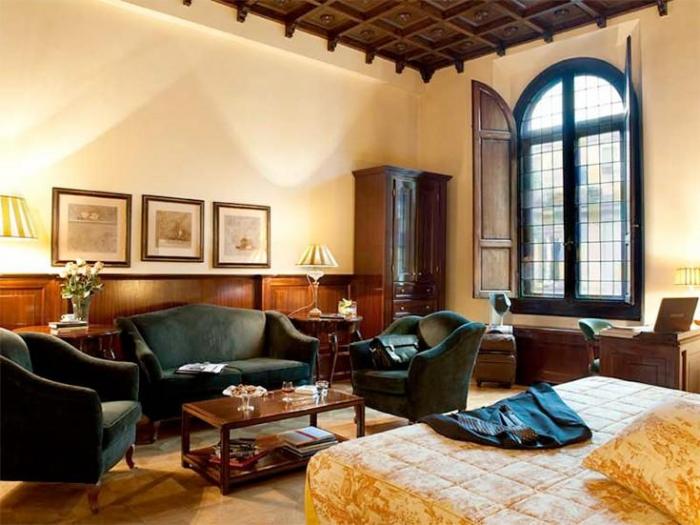 Из сада на крыше и ресторана Terrazza Brunelleschi открывается потрясающий вид на Флоренцию: купол собора Санта-Мария-дель-Фьоре и колокольню Джотто. Остановиться здесь — удовольствие не из дешевых, однако удобное расположение и роскошная обстановка могут прельстить не только любителей пустить пыль в глаза, это действительно весьма востребованный у путешественников отель.