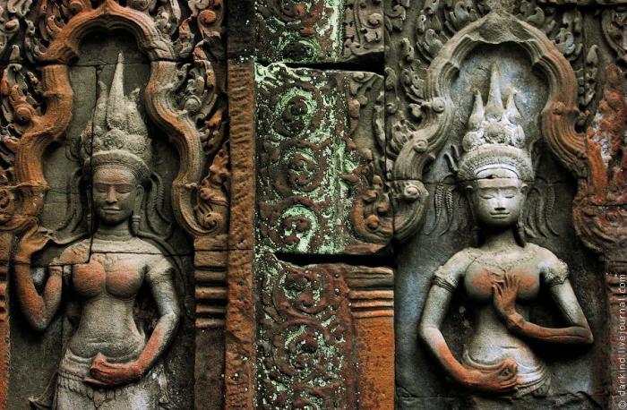 Все стены храмов как одна большая книга расписаны информацией в графическом представлении, гиды рассказывают много тонкостей и особенностей этих барельефов. Почти везде обыгрывается образы вечно юных и не по азиатски полногрудых девушек апсар. Кто желает посмотреть на материализованных апсар местного разлива, то можно сходить на танцевальное шоу в одном из местных отелей: