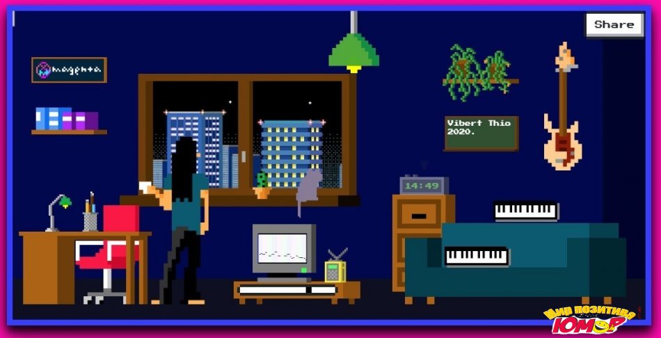 Lo-Fi музыка сейчас особенно популярна, стримы lofi hip hop radio набирают в YouTube десятки миллионов просмотров. В Lo-Fi плеере вы сможете сделать свой собственный Lo-Fi трек при помощи искусственного интеллекта. В вашем распоряжении синтезатор, пианино, электрическая гитара и акустическая, а также простенький бит. Вы можете менять скорость, тональность мелодии, настроение. Можно также менять вид за окном и фоновый шум. Потыкайте по пиксельной комнате, чтобы обнаружить все её умения.