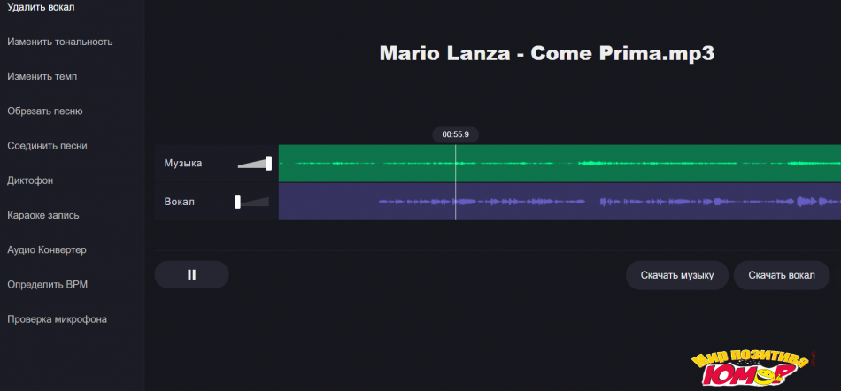 Сайт пригодится, если вам вдруг захотелось сделать из любимой песни минусовку или извлечь вокал, или надо узнать точную скорость оригинальной композиции.