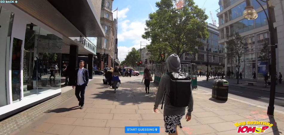 Гуляйте по улицам, всматривайтесь в вывески, вслушивайтесь в речь прохожих, ищите знакомые достопримечательности, чтобы угадать, по какому городу вы путешествуете. Когда у вас появится догадка, нажмите синюю кнопку START GUESSING и ткните мышкой в ваше предполагаемое местонахождение на карте мира.