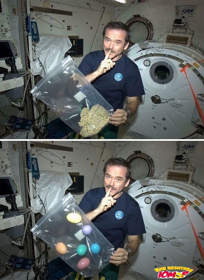 Космонавт Крис Хэдфилд с марихуаной - конечно это подделка - на самом деле он приготовил сюрприз - пасхальные яйца