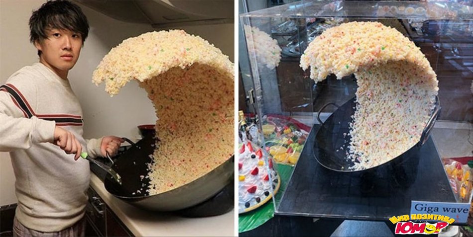Парень, поднявший волну риса и восхитивший миллионы, на самом деле стоит около скульптуры